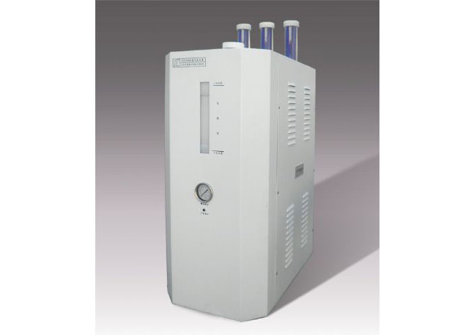 氫氣發(fā)生器由電解池、純水箱、氫/水分離器、收集器、干燥器、傳感器、壓力調(diào)節(jié)閥、開關(guān)電源等部件組成。只電解純水即可產(chǎn)氫。通電后,電解池陰極產(chǎn)氫氣,陽極產(chǎn)氧氣,氫氣進(jìn)入氫/水分離器。氧氣排入大氣。氫/水分離器將氫氣和水分離。氫氣進(jìn)入干燥器除濕后,經(jīng)穩(wěn)壓閥、調(diào)節(jié)閥調(diào)整到額定壓力(0.02~0.45Mpa可調(diào))由出口輸出。電解池的產(chǎn)氫壓力由傳感器控制在0.45Mpa左右,當(dāng)壓力達(dá)到設(shè)定值時(shí),電解池電源供應(yīng)切斷;壓力下降,低于設(shè)定值時(shí)電源恢復(fù)供電。